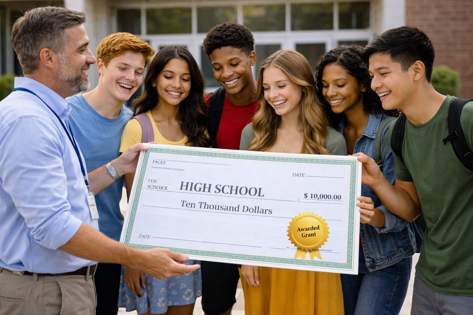 Den Gesamterlös von 340 Euro übergab der Schülersprecher XY zusammen mit GMS-Rektor YX, Frau WZ(langjährige Koordinatorin der Tafelladenaktion) und den SMV-Lehrerinnen Frau XY und Frau XY Donnerstagmorgen, den 30.6.2022 Herrn XY als Vertreter des Tafelladens.